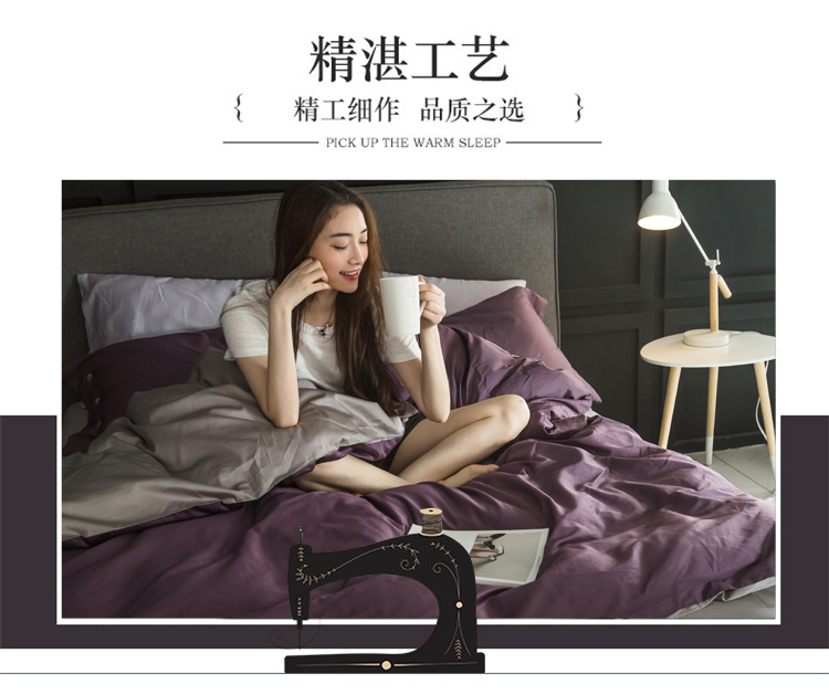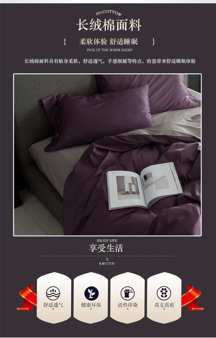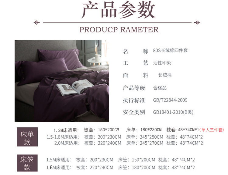 出口欧美80支埃及长绒棉纯棉四件套贡缎全棉纯色简约床上用品1.8m