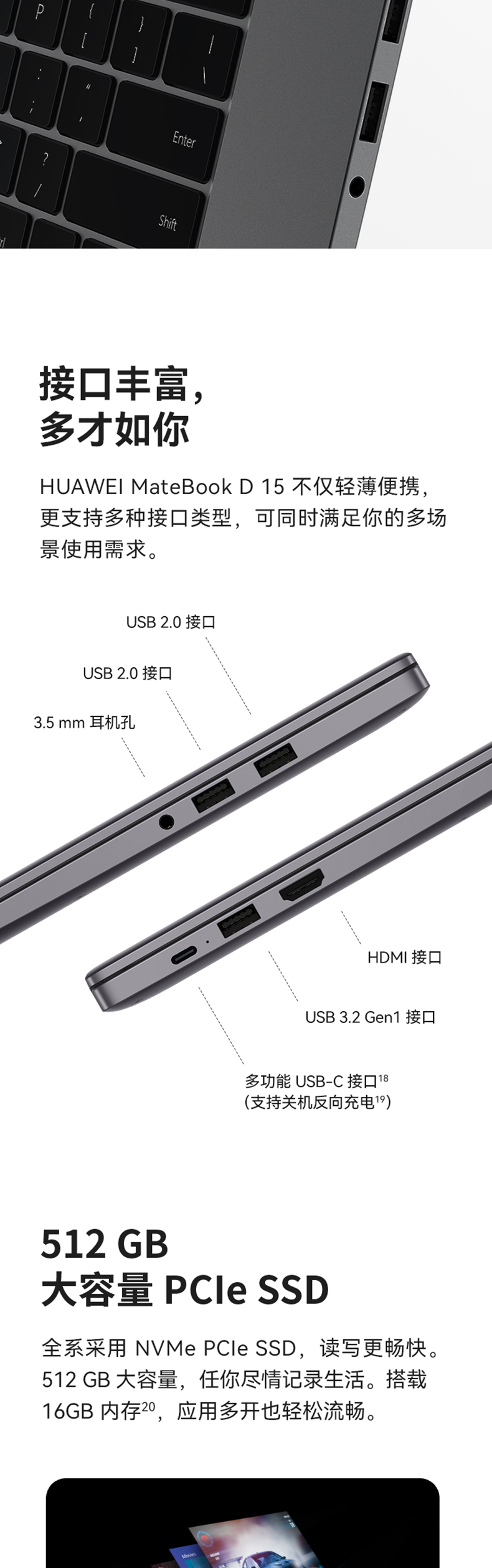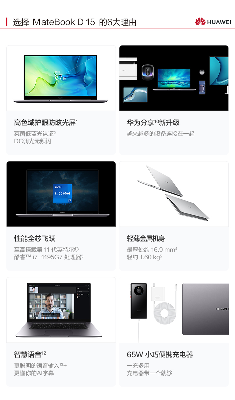 华为/HUAWEI MateBook D15 2022款 11代英特尔酷睿处理器16GB+512GB锐炬显卡笔记本电脑护眼屏